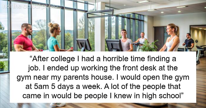 After college I had a horrible time finding a job. I ended up working the front desk at the gym near my parents house for 3 years. I would open the gym at 5am 5 days a week. A lot of the people that came in would be people I knew in high school. Sometimes they would act like they didn't know who I was in order to avoid an awkward situation, which just made it worse. There was a girl that I went to a dance with Sophomore year that would come in every morning. My job is to greet anyone that walks in so the first few times I would say hi "name" and she would swipe her card and completely ignore me. At a certain point my parents stopped helping me with money and I couldn't afford to fill my gas tank. I would ride my old bike from when I was a little kid to work. Sometime rain, snow whatever.