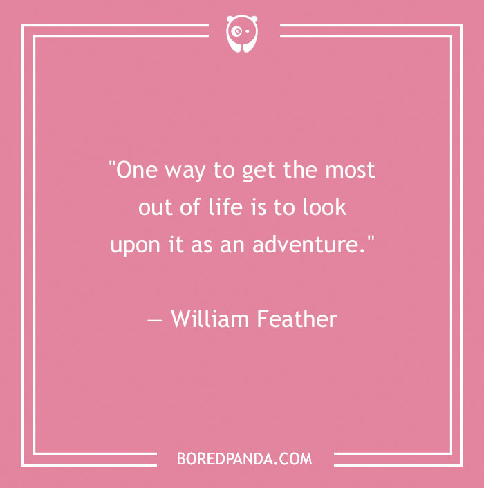 "One way to get the most out of life is to look upon it as an adventure." — William Feather
