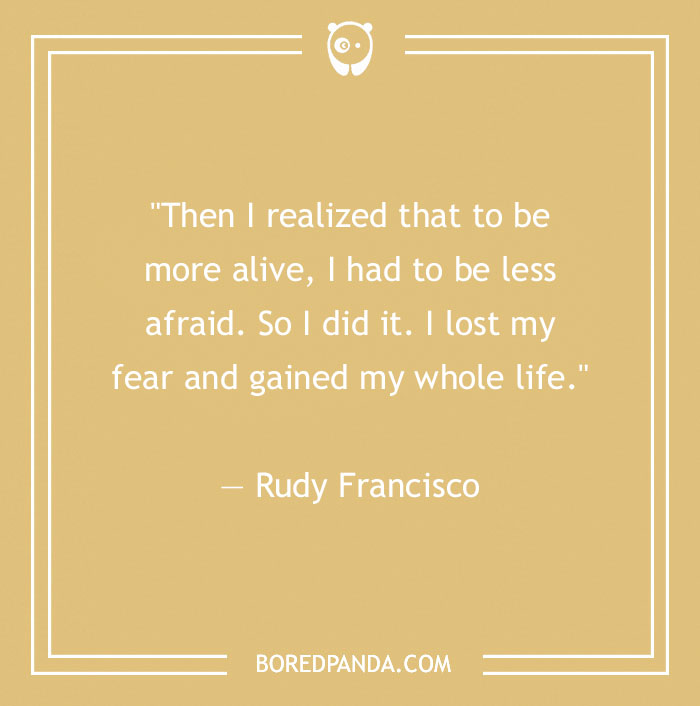 "Then I realized that to be more alive, I had to be less afraid. So I did it. I lost my fear and gained my whole life." ― Rudy Francisco