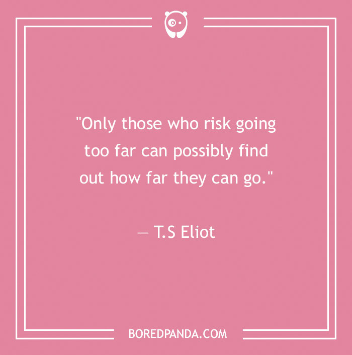 "Only those who risk going too far can possibly find out how far they can go." ― T.S Eliot