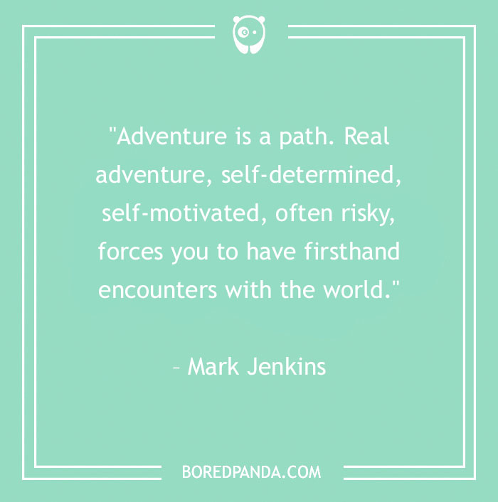 "Adventure is a path. Real adventure, self-determined, self-motivated, often risky, forces you to have firsthand encounters with the world." – Mark Jenkins