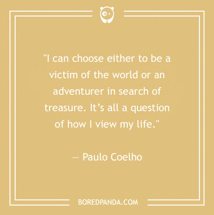 "I can choose either to be a victim of the world or an adventurer in search of treasure. It’s all a question of how I view my life." ― Paulo Coelho