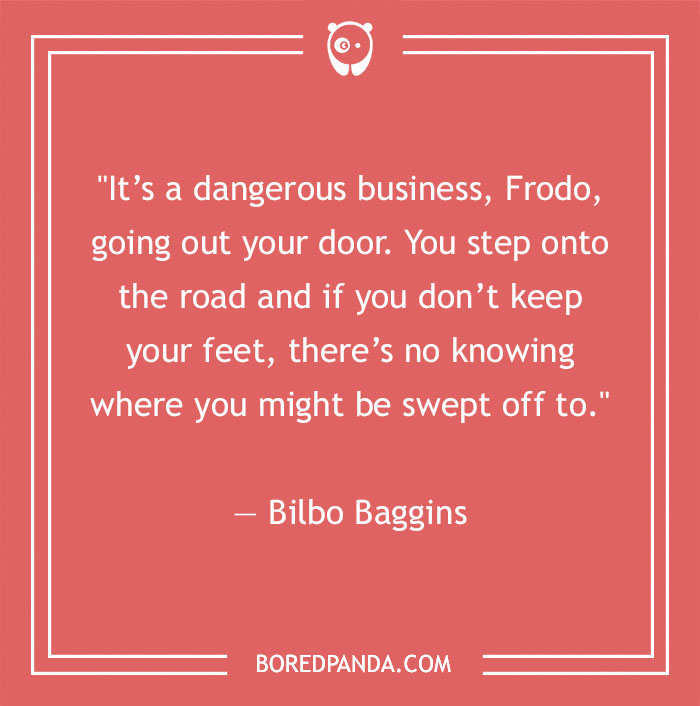 "It’s a dangerous business, Frodo, going out your door. You step onto the road and if you don’t keep your feet, there’s no knowing where you might be swept off to." — Bilbo Baggins