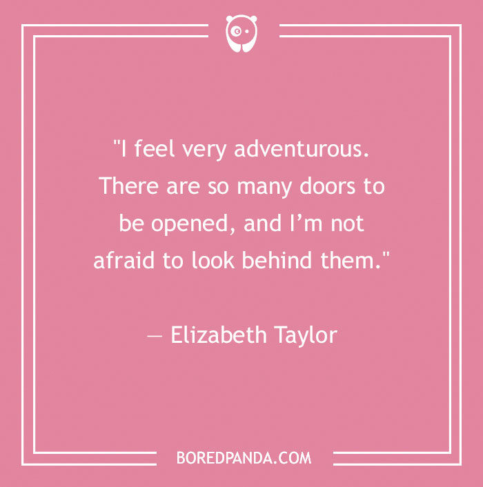 "I feel very adventurous. There are so many doors to be opened, and I’m not afraid to look behind them." ― Elizabeth Taylor