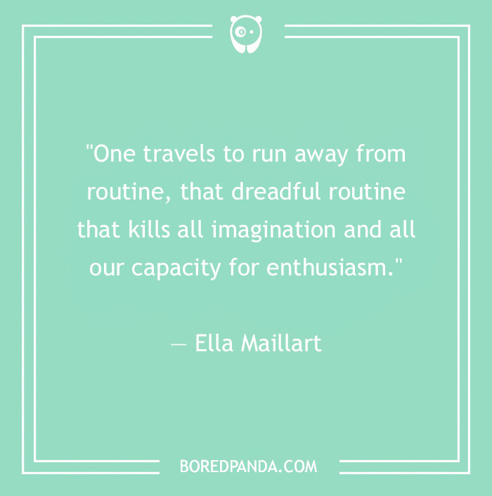 "One travels to run away from routine, that dreadful routine that kills all imagination and all our capacity for enthusiasm." ― Ella Maillart