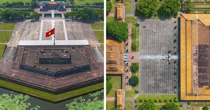 I want to introduce you to this photo collection featuring aerial shots taken with a drone, showcasing angles and frames that depict the solemnity, serenity, and eternal nature of the spiritual world through the architecture of that era.