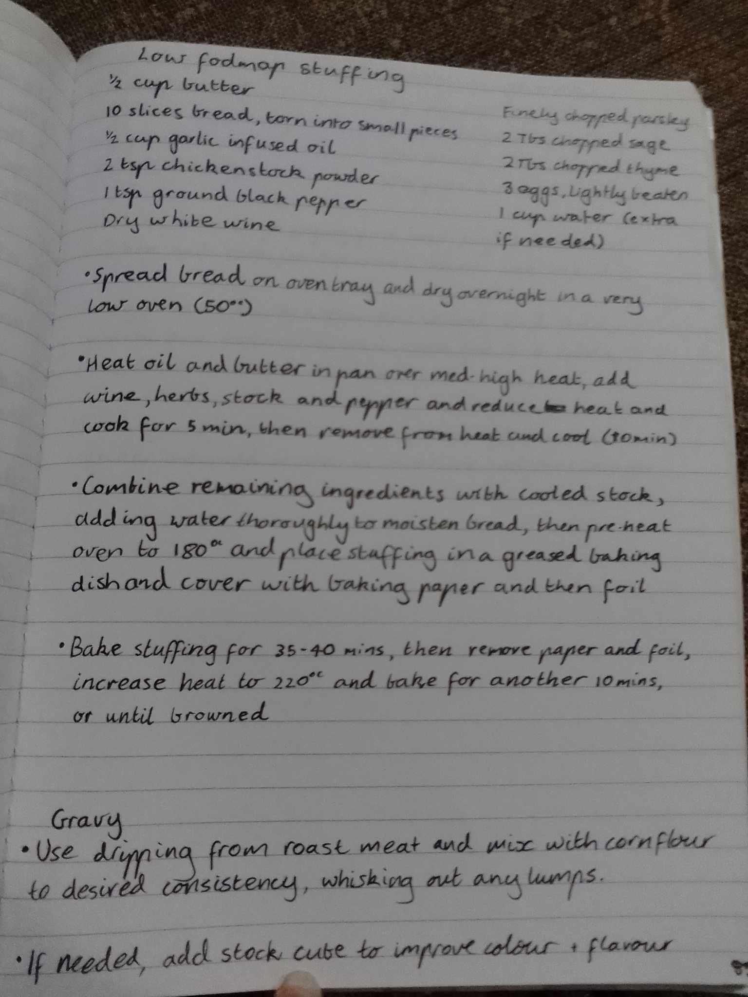 Given it's just past Christmas, a time when I have to make even more adjustments to recipes for my allergies and intollerances, a favourite easy cheap recipe I love is Low FODMAP stuffing. Although I don't know if I should be called stuffing when the original recipe is baked separate to the meat. 472582815_...27b1c8.jpg