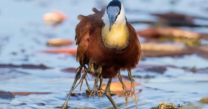 African Jacanas rarely fly and spend most of their lives on the water which earned them a suitable nickname — lily-trotters.