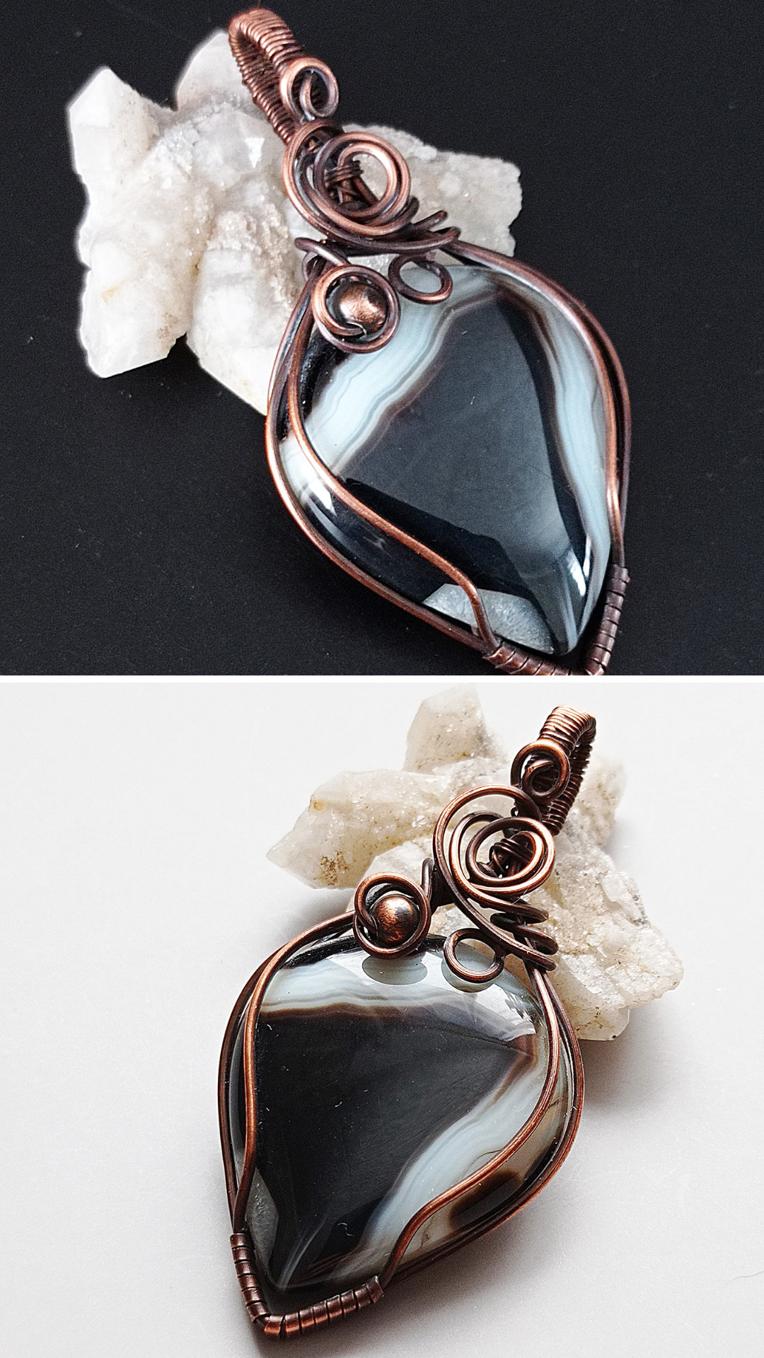 Beads and beads I did not like. But the copper wire was the best fit for the stone! She emphasized all his virtues and very dynamically combined with him. Soft wire and hard stone! It’s like ice and fire, only your personal ice and fire, and you can not only hold them in your hand, but always carry them with you!