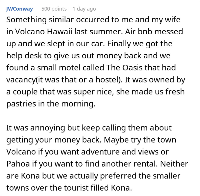 Redditor u/lightfighter06 shared the awful experience they recently had booking a room with Airbnb while they were visiting Kona, in Hawaii, with their wife. In a very bizarre twist, it turned out that the lodgings had been double-booked.