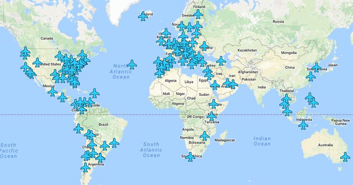 Made by a computer security engineer, the map already has 130 airports, and it’s regularly updated with new ones
