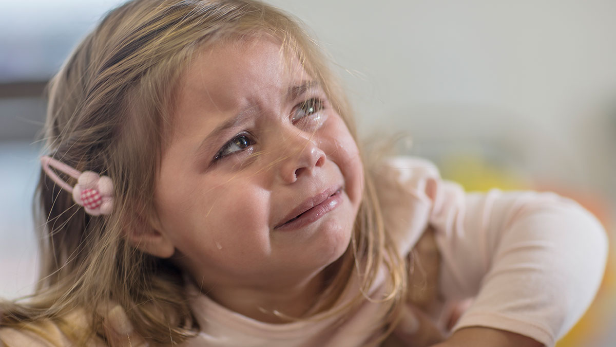 Young girl crying with tears streaming down her face, capturing a heartbreaking and sad goodbye at the airport moment. Once saw a little girl who was trying to run after her father when he entered the security. Her mother held her back, the sound of her crying will always stay with me. It was really heartbreaking.
