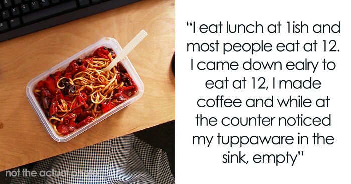 Load More Replies...Why in the world is lunch thievery even a thing?! I get it if you have two identical Tupperware and you grab and eat the wrong thing (assuming poor labelling as well, which does happen). But to take something you *know* isn't yours? WTF is wrong with people?