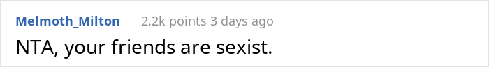 Load More Replies...Well in my family women's time means the little girls go along, same as men's time. I don't think that's a big deal. Or do y'all think we're all sexist in my family? The only issue is thinking she'd need more care. But they think that not because they're jerks. But because most people consider girls as softer even though that's not always the case. (There are a lot of women stronger than men)