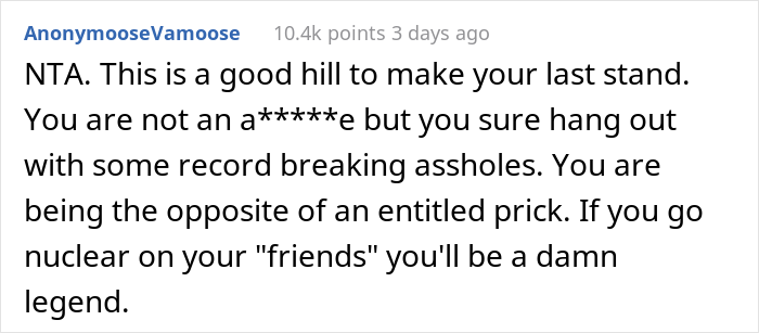 That whole “we’re afraid we’d have to stay in a hotel and limit our activities” excuse was malarkey. Even if these guys are all even Boomers (which is doubtful), or definitely GenX and younger (quite likely) they are far too young to actually believe that. What they really wanted to say was; “no females allowed” (like they’re in grade school with a treehouse). I mean, there are Girl Scouts, female hikers and campers, and women in the military for crying out loud! Daddy is a good man, definitely NTA. He honestly did not make the connection that no wives/GFs was clear code for no females period. Otherwise he’d never invited his daughter or stayed in the group. However, in his eagerness to defend his friends after painting the true picture, he’s still letting them off the hook too easily. Not saying he needs to berate them. He definitely does not, because they clearly got the point for this situation. But the guys were (and likely still are) likely sexist as all get out.