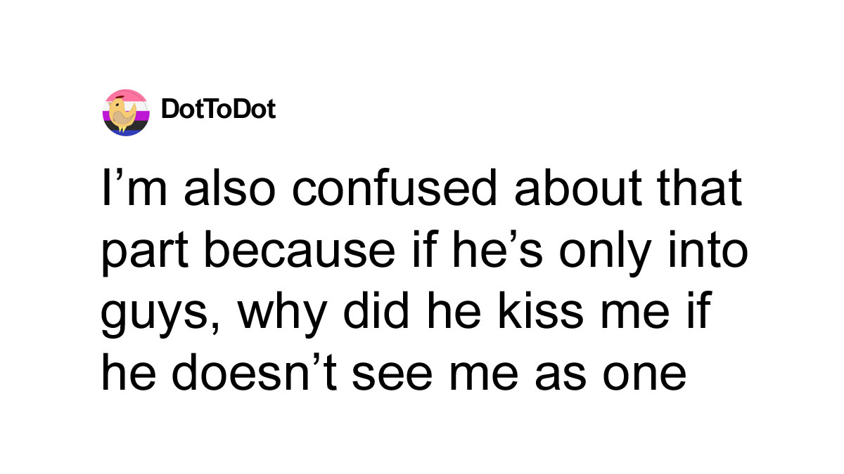 Load More Replies...Simons comment was about him, not you. You can tell because being gay is not about who you kiss but you are attracted to. He's struggling with his own identity and yours got caught in friendly fire. Not an excuse he can use forever, but don't write him off unless he sticks to it. It was dumb a d hurtful, but it sounds like it comes from self loathing. So bear that in mind. It would be a shame to throw away what seems like a good friendship on one AH day.