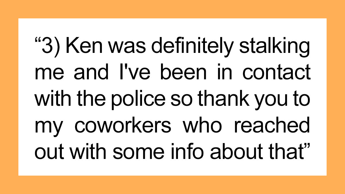 After the discussion online, where people were questioning the situation and how the author should’ve handled the situation, she provided an update stating that there were more pictures taken of her by Ken that she didn’t know of. This was enough to prove that the man was stalking her, so he got fired, and she also had to get a restraining order against him. The poster is now waiting for a court date, so that this situation can be settled and forgotten.