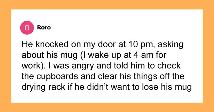 Once, he knocked on my door at 10 pm, asking about his mug (I wake up at 4 am for work)