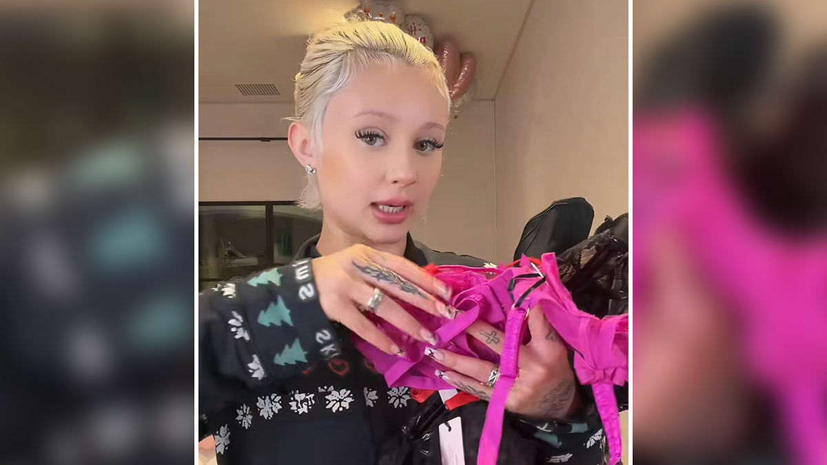 The 20-year-old shared the lingerie with her audience, holding up lace bras, underwear, and a corset unfazed, treating them like any other high-end fashion item.