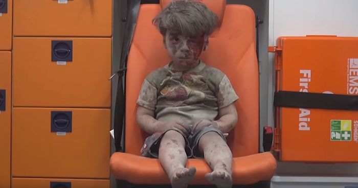 If pictures speak louder than words then this image of a five-year-old Syrian boy waiting in an ambulance after a recent airstrike in Aleppo is just about as loud as it gets.