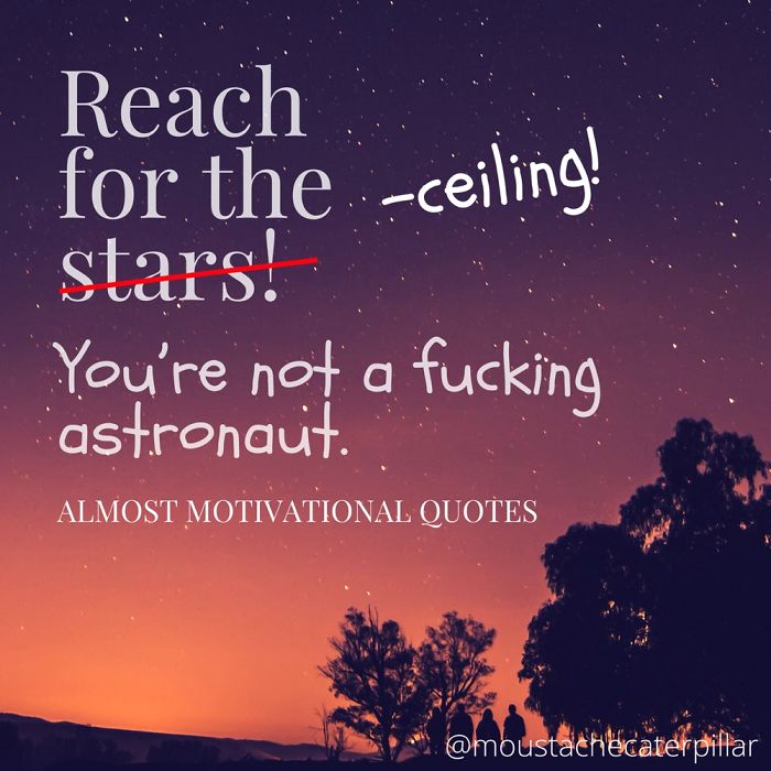 My hobby is comedy writing so for fun I decided to come up with a few of my own ‘almost’ or ‘ anti-motivational’ posters. Feel free to share if they make you laugh.
