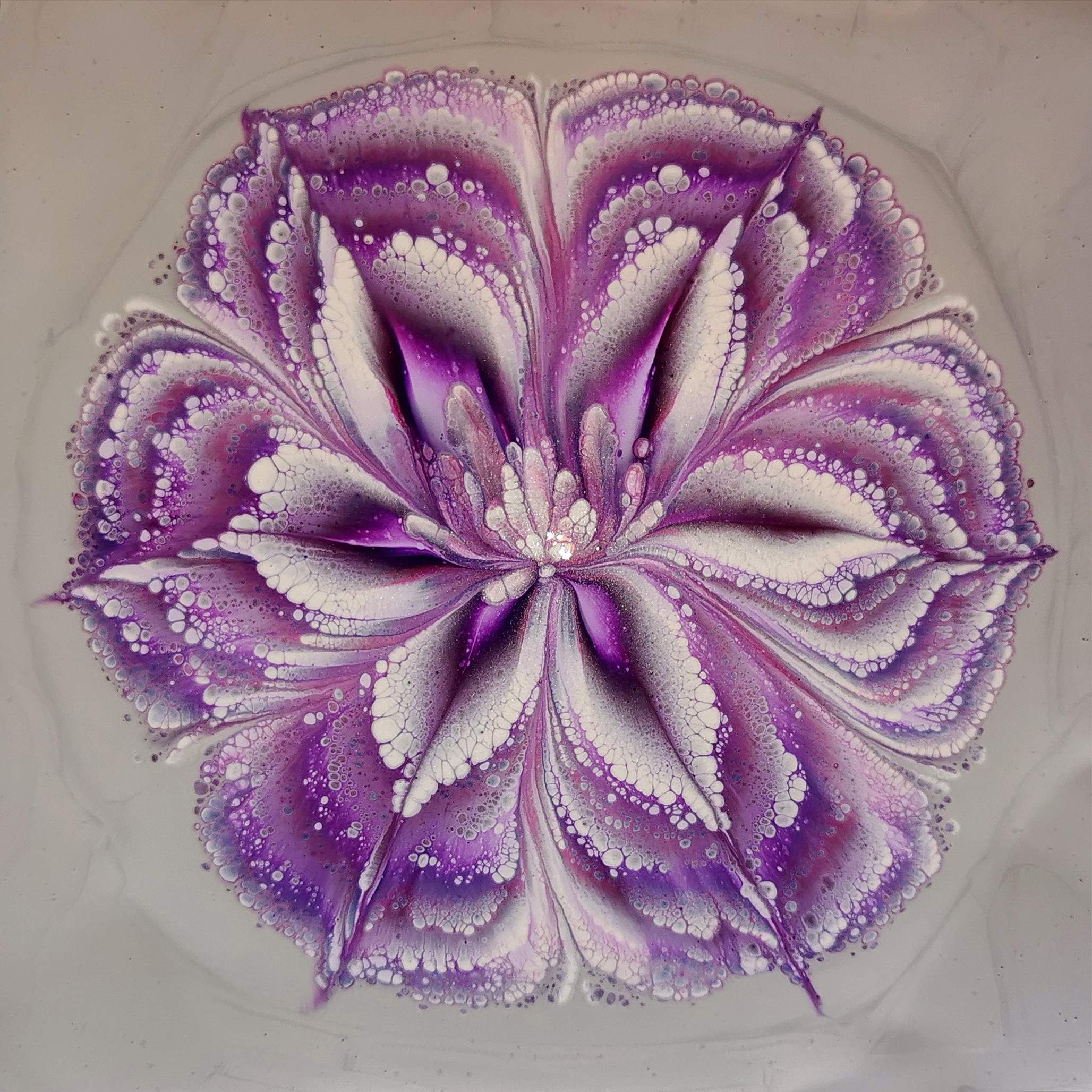 In today’s video I will show you how to paint Amazing 3D Acrylic pour flower with Purples on the silver background. I mixed TLP Velvet pigment with Vallejo Pearl medium and the lacing is just stunning and it really gives the 3D look to this flower.