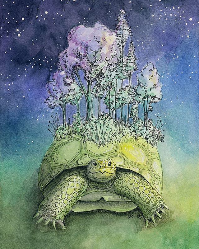 Who knows the myth of the earth we live on, carried by a giant turtle on its shell?