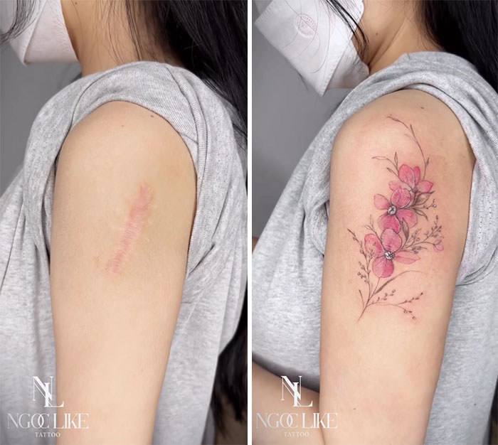 Tran Thi Bich Ngoc, also known as Ngoc Like Tattoo, knows this better than most. After all, this Vietnamese tattoo artist with over a decade of experience under her belt specializes in helping women who wish to cover up scarring from self-harm, mastectomy, post-birth, accidents, burns, trauma, and abuse experiences. To celebrate Ngoc's most recent work, we’ve collected some of the artist’s most impressive new tattoos which range from flowers to Studio Ghibli classics.