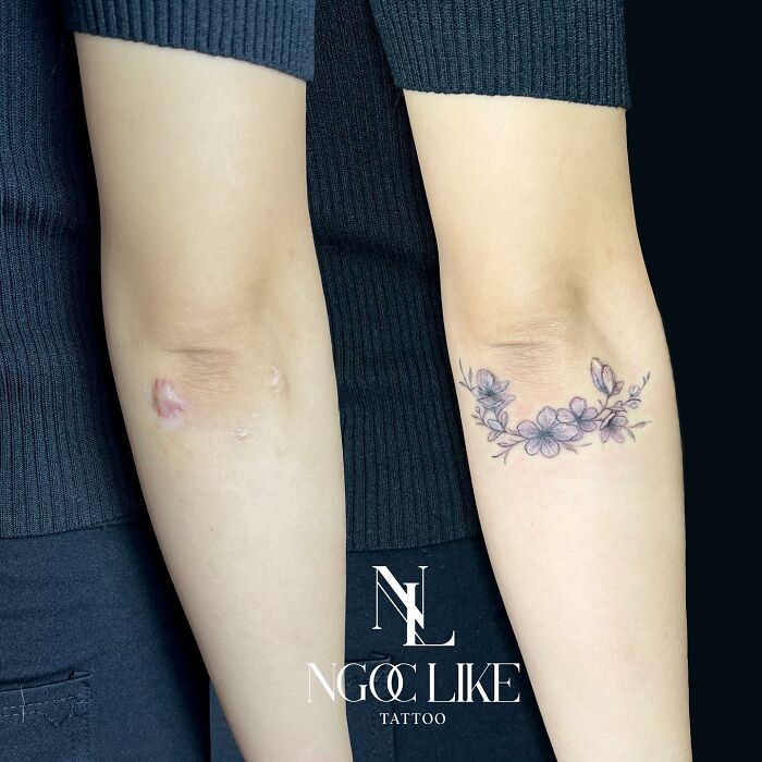 Although it may come as a surprise, the scar cover-up business remains a specialized sector within the tattoo industry, which can be attributed to the intricate nature of the craft. "Tattooing over scars differs greatly from tattooing over unscarred skin. The only thing you can predict is that the skin is really unpredictable!" Harrison said. Ngoc, who believes she has tackled all forms of scars, echoes Harrison's comment, adding that "using illusion art in covering scars is important" as well.