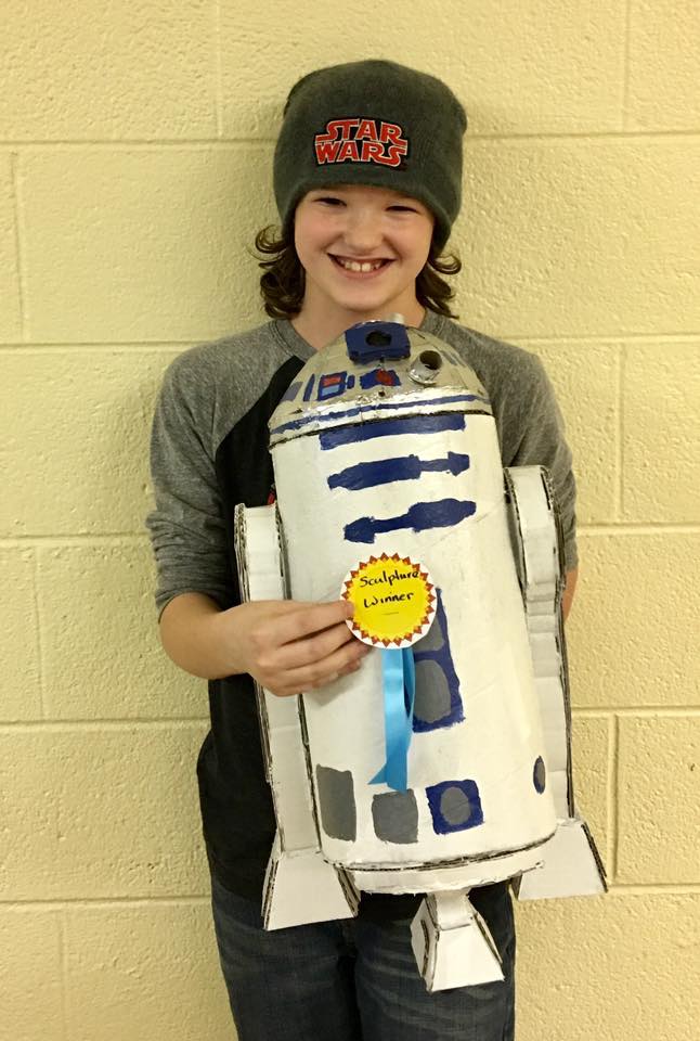 My 12 year old so also creates cardboard sculptures. He recently won for best sculpture at out homeschooling co-op for his r2-d2. I would love for him to get to talk to her! juried-art...096bd5.jpg