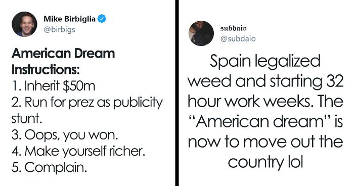 Load More Replies...I think the American dream was a myth from its very invention on; rags-to-riches has happened and still happens, but it is the exception. Usually, rich stays rich and poor stays poor. With all its flaws, the US is still a fascinating country, and I cannot wait to be able to travel there again. And looking at my home, the European Union, there are so many flaws, too. Thus, the wisest choice probably is not to live the dream (neither the american, not any other one) but rather to contribute to forging a more-liveable future by taking action in the here and now – a future that will offer more opportunities to everyone.