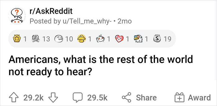 Well, Redditor Tell_me_why- did precisely that when they reached out to the Ask Reddit community: "Americans, what is the rest of the world not ready to hear?" The post immediately became a hit. Thousands of users wasted no time typing out the quirky things that people from other countries are unaware of, and sharing some hard truths along the way.