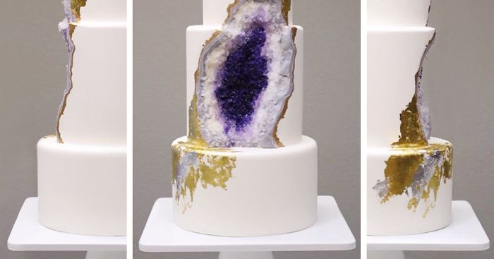 “This cake took about 16 hands-on hours to create with several more hours of planning involved prior to making the cake,” Rachel told Bored Panda. “I was given several pieces of inspiration to draw ideas from, including actual geodes, a beautiful illustration, and a variety of table decor items like plates, chargers, and geometric floral arrangements. I knew I wanted to create a show stopping cake and use the geode as the focal point creating an awe-inspiring visual experience for the guests.”