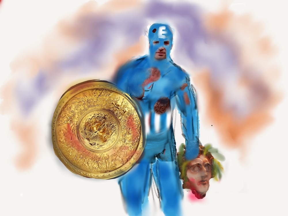 Mixing Me, Captain America and Ancient Greek hero Perseus. Holding the head of Medusa and the shield of Achilles