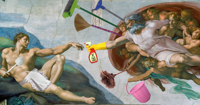 Ten years ago I carefully “photoshopped” an anime character into the middle of Botticelli’s ‘The Birth of Venus’, and thus began a love affair with the classics (screwing with them, that is!) I often transplant electronic devices or household items, giving the painting a quirky new meaning.