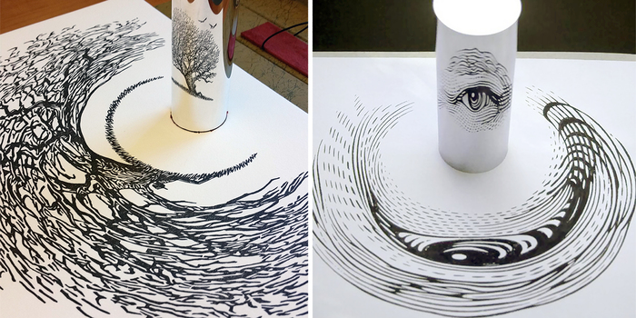 A year ago, we wrote about Jonty Hurwitz and his amazing anamorphic art that can only be seen in the reflection of a mirrored cylinder. Although the technique was created in the late Renaissance (16th century), artist like Jonty and István Orosz made it popular again. We’ve begun to see more and more of this type of art so we thought it’s about time to look at some of the best examples.