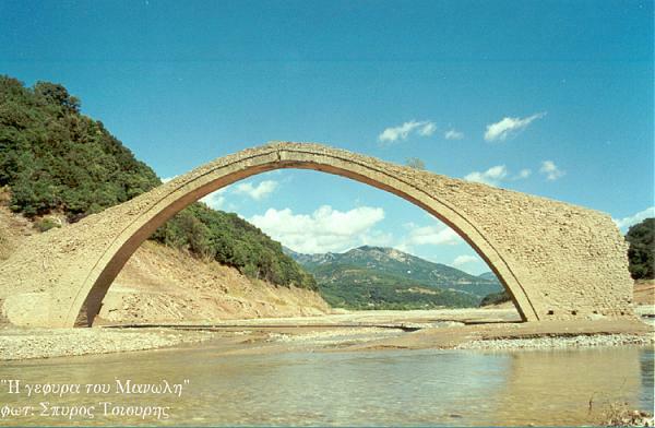 The Stone Bridge Of Manolis Over Agrafiotis River In Greece. The Bridge Is Almost All Year Underwater And Only Part Of Its Arch May Be Visible, Except The Summer Months When The Water Level Drop