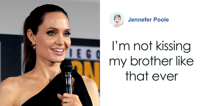 A person posted on Reddit: “Can somebody explain what’s going on with Angelina Jolie smooching her brother like that?”