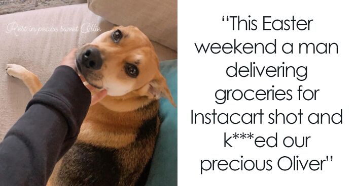 Alongside various heartbreakingly adorable pictures of the poor dog, Angie wrote: “This Easter weekend a man delivering groceries for Instacart shot & killed our precious Oliver.”