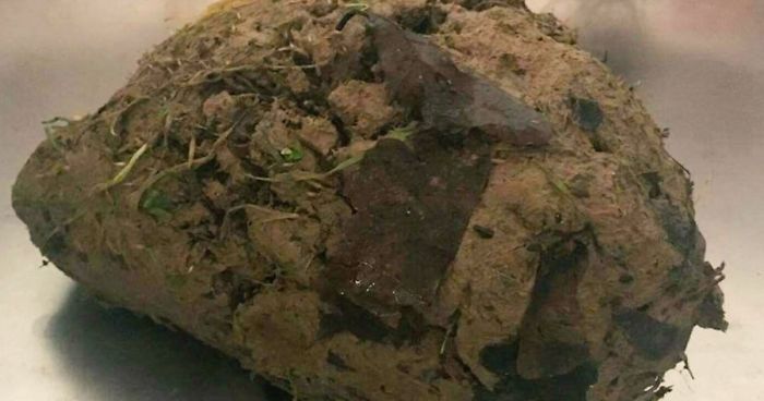 However, this didn’t stop the dog from rolling it in wet clay