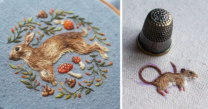 Chloe’s handmade embroidered animals have been stealing hearts across the web since 2013, when she uploaded a Tumblr photo of a tiny squirrel, intricately sewn in full colour. Since then, she’s threaded all kinds of woodland creatures, with a special focus on rabbits in her latest series of Instagram posts. Her technique is so meticulous that the animals look ready to leap right out of the frame, even though most of them are barely the size of a thimble.