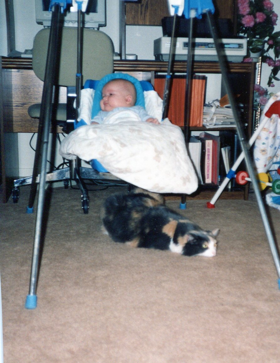 Load More Replies...This is where our cat used to lie when my son was in his swing. Not sleeping, just on guard duty josh061-66...194ba6.jpg