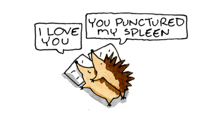 They often fit in the genre of “sadorable,” a portmanteau of sad and adorable. Examples of this are the cat with allergies or the hedgehogs who refuse to stop cuddling despite impalement.