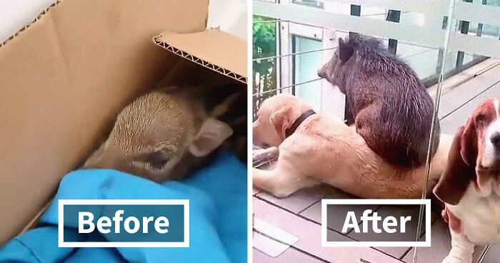 Interview With OwnerYou never know what fate will bring to your doorstep. It might bring a box, but inside you won’t find a thing you expected from Amazon, but a wild baby boar. Yes, you read this correctly— a wild baby boar. This actually happened to Dora Ngai, a Chinese vlogger who lives in Sri Lanka with her boyfriend of 4 years and 4 lovely dogs. It happened on September 3rd, 2020, when lockdowns gripped the world. At the time, Dora was boarded up in her house, bored out of her mind, when a wild boar wound up near her house in a box. Dora’s gardener found the box and brought it to her. And the rest is history which will be recounted by none other than Dora Ngai, who pleasantly told it all to Bored Panda. So let’s get to it!