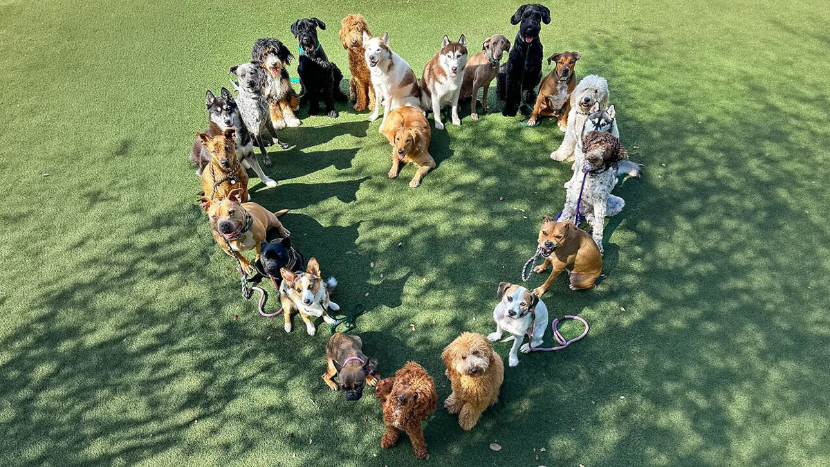 Getting one dog to sit still for a photo can already feel like a small victory. Now imagine dozens of them, different sizes, personalities, energy levels, all sitting side by side, facing the camera at the same time. It sounds unrealistic, but one dog daycare in Miami has quietly turned it into a routine.