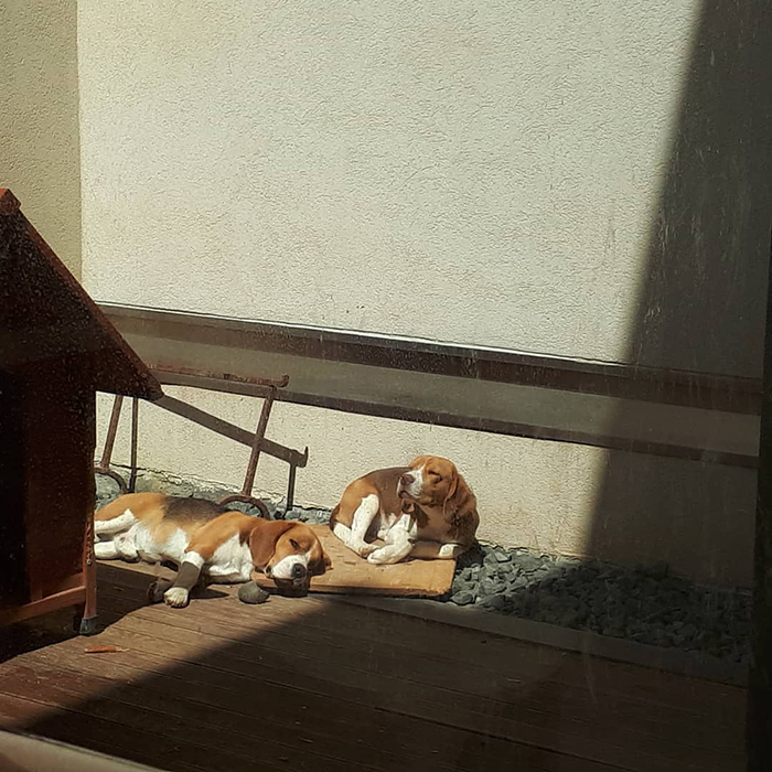 Wife took a picture of the dogs sunbathing