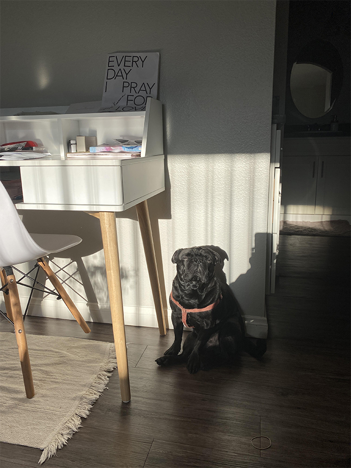 My dog looks like she is glowing because she loves laying on this one spot where the sun shines straight through a tiny window