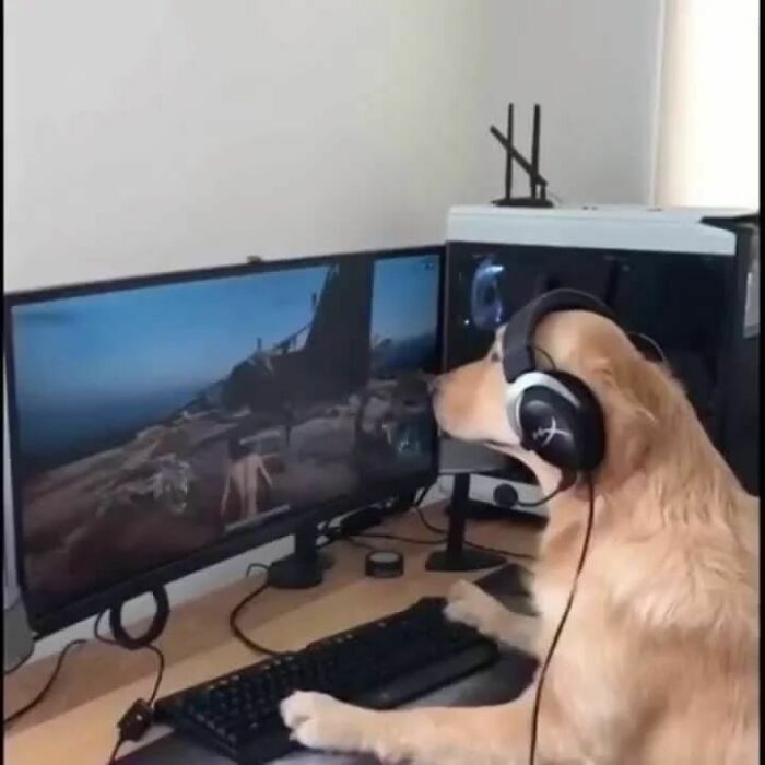 That dog is gonna get to good at playing on PC that it's gonna start playing valorent(correct any spelling because I can't spell)