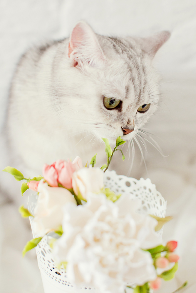 Flowers have the most alluring smell, and not only to the impressionable bees. We have made a list of photos that show animals enjoying a whiff or two from a petal or bloom. Kittens, nature's cuddliest critters, look even better when they're enjoying the sweet scents of flowers. Same goes for bunnies!