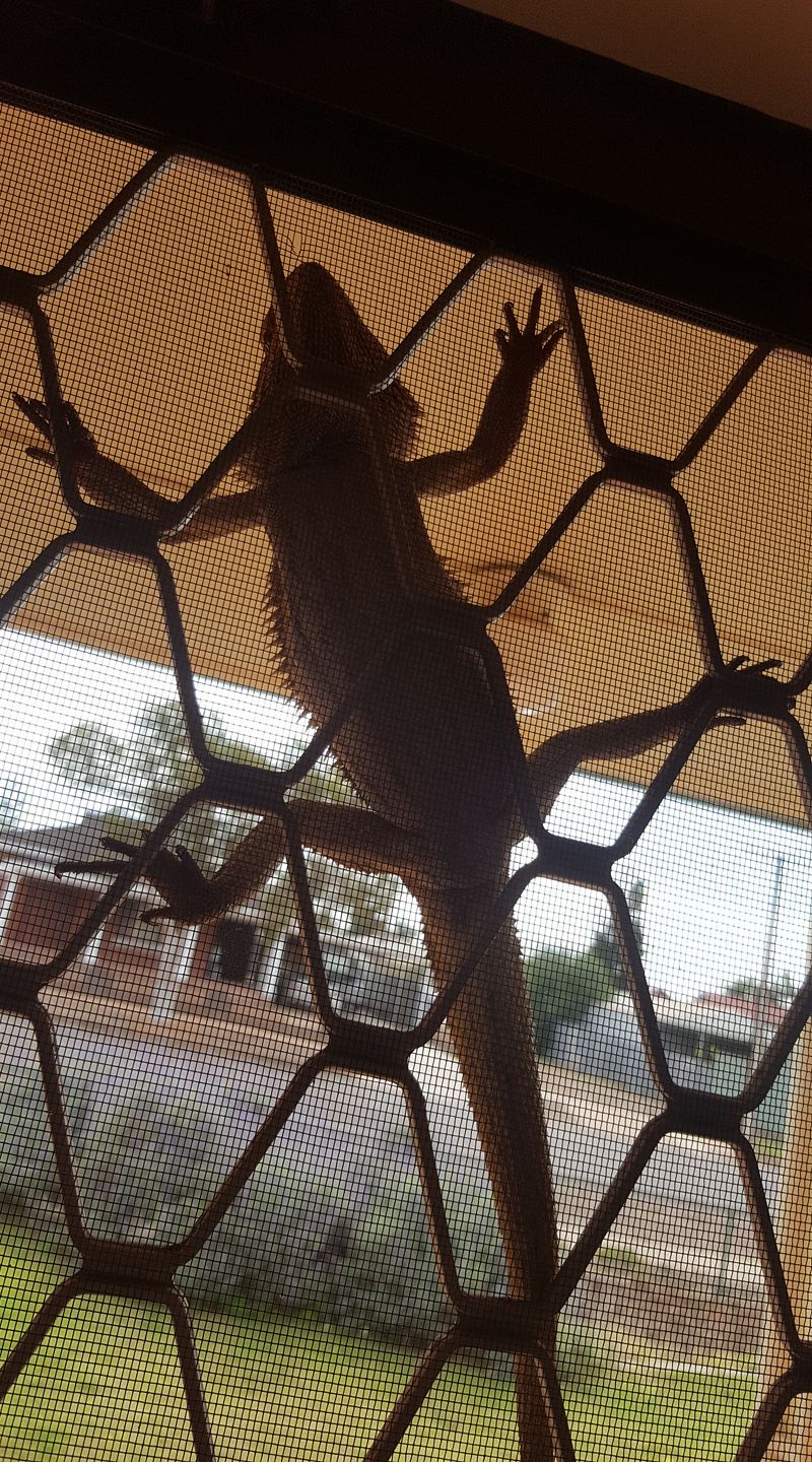 I had a huge Bearded Dragon on my front screen door the other day. I was tempted to go out and grab him and call him Fluffy and dress him in different clothes every day. Then my stupid cat spotted it and it bolted :( So now I call him Fluffy the Pet That Never Was. Fluffy-the...de2bee.jpg